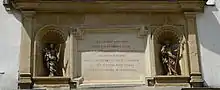 Sous une niche avec une statue de Saint Sébastien à gauche de l'entrée se trouve un chronogramme avec l'année 1674.