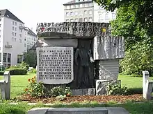 En 1951, une stèle commémorative est placée par des survivants. Celle-ci est remplacée en 1985 avec un monument plus important. Le monument se compose d'un bloc de granit de la carrière de l'ancien camp de concentration de Mauthausen, principal camp de concentration d'Autriche, et une statue en bronze symbolisant un survivant. L'inscription est le fruit du président de l'association des survivants des camps de concentration, Wilhelm Steiner. Il y est écrit en allemand: