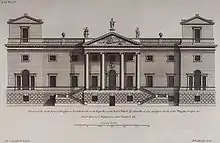 Colen Campbell est l'architecte le plus crédité de la conception. Cependant, des recherches et des études ultérieures montrent que ses premiers travaux sur la conception sont datés de 1723, ce qui, en utilisant le calendrier moderne, serait de mars 1723. Campbell peut être lié au projet, mais ses conceptions initiales et ultérieures montrent ses tours préférées de style Wilton, telles qu'ils les a publiées dans Vitruvivs Britannicus en 1725. Cependant, la conception finale des dômes de la tour est entreprise par James Gibbs, avec : la tour sud-ouest datée de 1725 ; le sud-est 1727 ; et les autres datées de 1729. L'intérieur et l'extérieur sont extravagants, estimés plus tard par Walpole lui-même à plus de 200 000 £ - il admet avoir brûlé la plupart des reçus, ajoutant qu'il n'est pas en mesure de vérifier la chronologie de l'architecture. Les meilleurs matériaux et designers sont employés, dont William Kent qui conçoit les plafonds des espaces d'accueil et du rez-de-chaussée, ainsi que certains meubles. Dans le contexte du moment, Campbell, Gibbs et Kent ne sont pas seulement des rivaux, mais se détestent beaucoup. Les propres archives de Ripley montrent qu'il a joué un rôle plus important dans le projet au cours des dernières étapes de la construction des édifices externes, ses plans le montrant modifiant considérablement les travaux antérieurs de Cambell et de Gibbs [6].