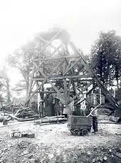 Deux machines à molettes au début de l’exploitation, à gauche pour le pompage, à droite pour l’extraction.