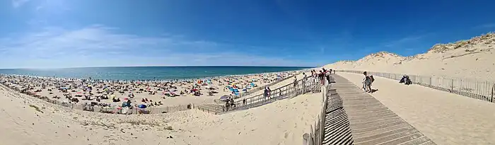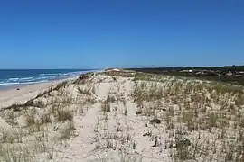 Les mouvements de terrains susceptibles de se produire sur la commune sont des avancées dunaires[37]. La migration dunaire est le mouvement des dunes, vers l’intérieur des terres. Les actions conjuguées de la mer et du vent ont pour effet de déplacer les sables et donc de modifier la morphologie du littoral[38].