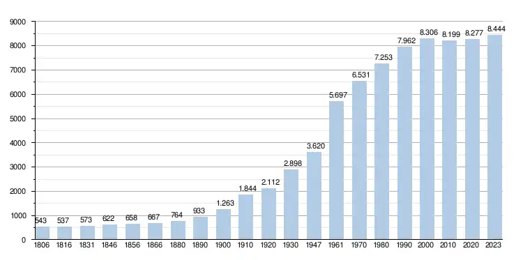 - Source : DGS - Remarque: 1806 jusqu'à 1981=recensement; depuis 1990=nombre d'habitants chaque 1er janvier[4]