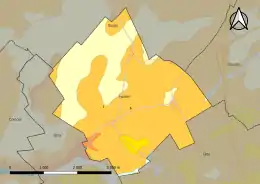 Le territoire communal est relativement plat puisque la dénivelée maximale est de 18 mètres. L'altitude du territoire varie en effet de 116 mètres à 134 mètres[12],[13].