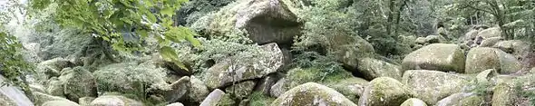 Le chaos rocheux de la vallée du Fao (ou « Rivière d'Argent »), menacé au XIXe siècle sous l'action des tailleurs de pierre, a été sauvegardé sous la pression de la population locale, à partir de 1895. « On voit à St.-Guinés une pierre de 18 à 20 pieds de diamètre ; l'eau de pluie, sans cesse agitée par le vent, l'a creusée à 8 pouces de profondeur sur une largeur de 4 pieds : l'eau renfermée dans le bassin guérit toute espèce de maux, les maladies de la peau sur-tout : on la boit, on s'en lave, on voudroit s'y baigner. Le tronc qui l'avoisine, étoit toujours rempli[9] ». Le rocher de Saint-Guinec sur la commune du Huelgoat aujourd'hui fut rayé des cartes par les carriers dans les années d'après guerre[10]. Même la « Roche tremblante » a failli disparaître[11] sous l'action des carriers[12]. Elle tremble vraiment, la grosse pierre de Huelgoat. Cette masse de 137 tonnes située en pleine forêt vacille facilement. Un indice : le point de contact est bas[13].