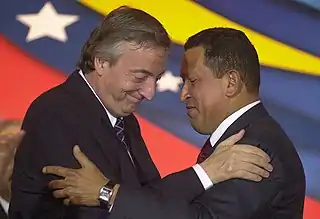Fervent opposant à l'impérialisme et au capitalisme néolibéral, il s'oppose à la politique étrangère des États-Unis. Il s'appuie sur des alliances fortes avec les gouvernements socialistes comme Evo Morales en Bolivie, Rafael Correa en Équateur, Raúl Castro à Cuba. Sa présidence est considérée comme une partie de la « vague rose » socialiste qui balaye l'Amérique latine. Il a soutenu la coopération entre l'Amérique latine et les Caraïbes et a contribué à la mise en place de l'Union des nations sud-américaines, de l'Alliance bolivarienne pour les Amériques, de la Banque du Sud, et du réseau régional de télévision Telesur. D'après le Time, il fait partie des 100 personnes les plus influentes du monde en 2005 et 2006.