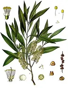 L'huile de cajeput est une huile essentielle extraite des feuilles de Melaleuca cajuputi, un arbre de la famille des Myrtacées. « Pour le cajeput, les anciennes nomenclatures botaniques non valides comme M. leucadendron devraient ne plus être utilisées par les opérateurs », rappelle l'Anses en 2020[1].