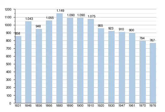 - Sources:INS, Rem:1831 jusqu'en 1970=recensements, 1976= nombre d'habitants au 31 décembre