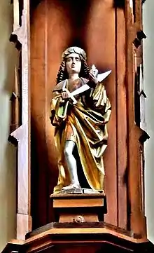 Il s'agit d'un statue en bois polychrome, doré et argenté d'une hauteur de 1,10 mètre qui se trouve dans l'église. Saint Pancrace, né en Phrygie en 290, est mort en martyr à Rome pendant la persécution de Dioclétien en 304. Il a donné son nom à un titre cardinalice. Il est représenté tenant à la main un cœur et une épée. Restaurée et redorée, la statue provient de l'ancienne église. Elle se trouve désormais dans la niche supérieure de l'autel latéral droit de l'église actuelle..