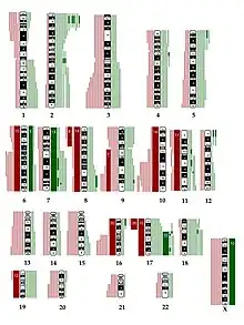 - En recherche et en clinique, pour l'étude et le diagnostic des cancers, de malformations congénitales, des retards mentaux, etc. Voir en particulier les articles sur les modifications chromosomiques pour des exemples de pathologies présentant des modifications dans la structure des chromosomes : Duplication (génétique), Cassure chromosomique.