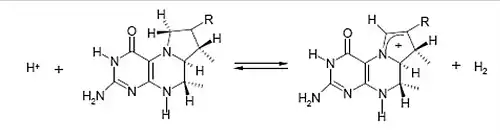 Ce ne sont pas à proprement parler des hydrogénases car elles n'utilisent pas de protons pour produire de l'hydrogène. Cependant, les nombreuses similitudes avec les hydrogénases lui confèrent cette dénomination. Longtemps appelées « hydrogénases sans métal » (metal free hydrogenases), elles furent renommées en 2000 « hydrogénases sans cluster [Fe-S] » à la suite de la découverte d'un motif à fer au sein du cofacteur de cette enzyme. Ce fer est non-hémique et possède deux ligands carbonyle[12]. Le cofacteur s’inactive à la lumière en perdant le motif fer carbonyle qui lui est lié[13].