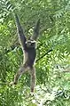 Il se déplace par brachiation à travers les arbres grâce ses longs bras.