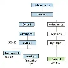 Position d'Hystaspe dans la lignée achéménide selon Darius le Grand dans l'inscription de Behistun