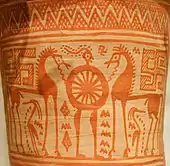- Vers 900-700 av. J.-C. : En Grèce, fin de la « période protogéométrique » (1050 à 900 av. J.-C.), et début de la période « géométrique » (900 à 700 av. J.-C.)[32]. Il apparaît en Attique, puis rapidement en Eubée et en Argolide une céramique différente, innovante dans les formes avec utilisation d’un tour plus rapide, dans le décor avec des motifs en demi-cercles ou de cercles concentriques peints au compas. Période de relatif isolement des différentes régions grecques[33]. À Athènes, l’étude des tombes révèle l’émergence de familles dominantes qui annonce l’aristocratie archaïque. La hiérarchie sociale n’est plus celle des sociétés palatiales à pouvoir centralisé[34].
