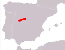 Cette espèce est endémique d'Espagne. Elle se rencontre entre 1 300 et 2 500 m d'altitude[2] dans la Sierra de Gredos, la Sierra de Béjar et la Sierra de Guadarrama.