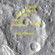 Par convention, les cratères satellites sont identifiés sur les cartes lunaires en plaçant la lettre sur le côté du point central du cratère qui est le plus proche de Abbas Ibn Firnas.