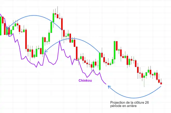 Souvent abregée en « Chikō » ou CS, elle correspond au dernier prix de clôture projeté vingt-six périodes en arrière. Elle est aussi appelée Lagging Span pour les analystes anglophones et le terme est également souvent utilisé par les analystes francophones.