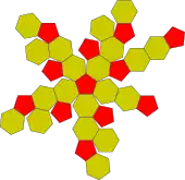 - (en) Patron en papier d'un icosaèdre tronqué