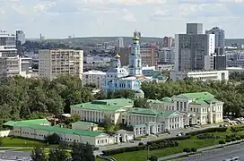 ![]() ![]() ![]() ![]() ![]() ![]() De haut en bas, de gauche à droite : Centre d'affaire et étang de la ville, le quartier de Gospromural, le centre Eltsine, le palais Kharitonov, la maison Sevastianov, l'université fédérale de l'Oural. |