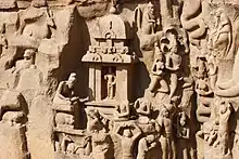 Détail d'un bas-relief monumental du VIIe siècle à Mahabalipuram, représentant La descente du Gange, épisode du Mahabharata.