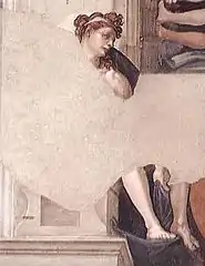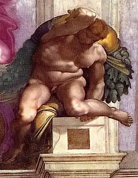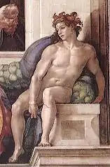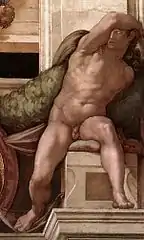 Les Ignudi sont des figures particulièrement célèbres peintes à fresque, réalisées par Michel-Ange sur le plafond de la chapelle Sixtine, aux musées du Vatican à Rome, dont la décoration a été commandée par Jules II.