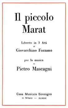 Il piccolo Marat est un drame lyrique ou d'opéra en trois actes du compositeur italien Pietro Mascagni sur un livret de Giovacchino Forzano.