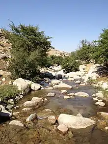 Dans le cours inférieur, la rivière passe par un ravin, et sur la droite se trouve une carrière de gravier. Plus loin, jusqu'à la localité Yanguiarik, le lit est à sec.
