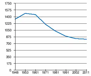 En 2002, l'âge moyen de la population était de 41,5 ans pour les hommes et 44,9 ans pour les femmes[4].