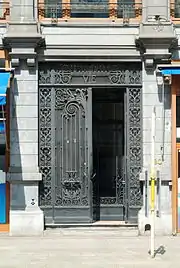 Cet immeuble très étroit présente au sud, orienté vers la place de Brouckère, « un élément d'angle circulaire orné de balcons et couronné d'une coupole »[1].