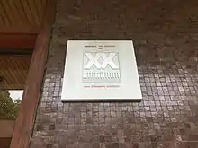 Une des plaques « Patrimoine du XXe siècle » apposées sur le bâtiment.