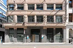 Le bâtiment compte sept niveaux. Le rez-de-chaussée au parement de granit[1],[2] présente une grande porte d'entrée du côté de la rue Royale, et de grandes baies dont la partie supérieure est ornée de fers forgés aux motifs géométriques.