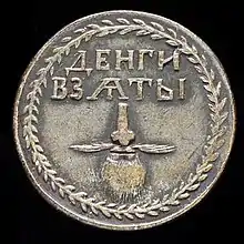 En guise de quittance, ceux-ci recevaient un jeton de bronze (qui servit également de monnaie d'échange), sur lequel l'inscription annonçait : « La taxe a été perçue » (Dengi vziaty), et l'image représentait une barbe[5]. Parfois apparaissait la devise : « La barbe est un fardeau inutile ». Les résistants au barbier étaient tenus de porter sur eux les jetons et de les présenter à chaque réquisition. Le jeton était à renouveler chaque année. Mais par la suite, beaucoup de nobles et de commerçants, trouvant la charge trop lourde, finissaient par se raser. Les plus récalcitrants étaient les gens du peuple. Ils payaient leur écot et demeuraient persuadés qu'ainsi ils étaient de « vrais mâles et de vrais chrétiens ».