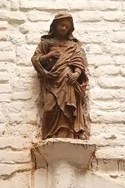 Le mur du fond était orné d'une statue de la Vierge en terre cuite, disparue et brisée vers le , et d'une vasque en pierre blanche ornée d'une tête d'homme et de deux volutes baroques.