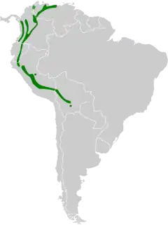 Cet oiseau est présent en Bolivie, Colombie, Équateur, Pérou et Venezuela.