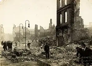 Plus de 40 locaux commerciaux, 300 propriétés résidentielles, l'hôtel de ville et la bibliothèque Carnegie sont détruits par l'incendie. Plus de 3 millions de livres de dégâts (l'équivalent de 172 millions d'euros aujourd'hui) ont été infligés, 2 000 personnes sont sans emploi et beaucoup d'autres deviennent sans abri. Deux volontaires de l'IRA non armés ont été abattus dans le nord de la ville.