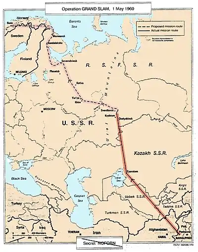 Le , treize jours avant la conférence au sommet de Paris, un U-2 décolle de Badaber pour une nouvelle mission de survol de l'Union soviétique. Il s'agit alors de photographier les sites de missiles balistiques intercontinentaux près de Sverdlovsk et Plesetsk, puis d'atterrir à Bodø, en Norvège.