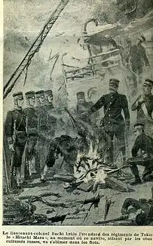 Le Hitachi Maru transporte 1 238 personnes, dont 727 hommes du 1er régiment de réserve de la garde impériale japonaise et 359 hommes de la 10e division. Le Sado Maru transporte quant à lui 1 258 personnes, dont 867 membres du bataillon de génie ferroviaire. Les deux navires ont à leur bord de grandes réserves de matériel, dont 18 obusiers de 28 cm demandés par la 3e armée japonaise pour attaquer les fortifications russes de Port-Arthur.
