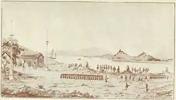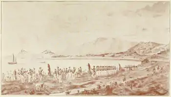 Peinture à l'aquarelle de soldats portugais à Baishaling par Alexandrino António de Melo.
