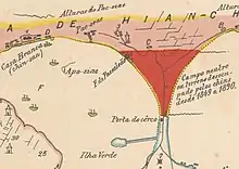 Carte ancienne de Macao, montrant le fort du Passaleão et la porte de la barrière (Portas do Cerco).