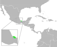 Cette espèce est endémique du Sud de l'État de Veracruz au Mexique[1]. Elle se rencontre entre 200 et 1 600 m d'altitude dans la Sierra de los Tuxtlas à proximité du volcan Santa Marta.