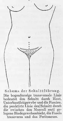 Une incision de Pfannenstiel (/pfɑːnεnʃti:l/) ou incision de Kerr ou incision de Pfannenstiel-Kerr [1] ou incision pubienne est un type d'incision chirurgicale qui permet d' accéder à l'abdomen. Elle est utilisée pour les chirurgies gynécologiques et orthopédiques[2], et c'est la méthode la plus courante pour effectuer des césariennes au XXIe siècle. Cette incision est également utilisée dans les interventions Stoppa pour les chirurgies orthopédiques pour traiter les fractures pelviennes[3].