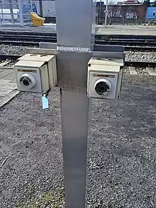 Il s'agit d'un boîtier carré comportant six lampes blanches en couronne, et une lampe rouge au centre; dans les boîtiers modernes, les lampes sont remplacées par des LED. Il s'en trouve placés plusieurs le long du quai, de manière que le conducteur puisse en observer quelle que soit la longueur de son train. Il est activé à l'aide de commutateurs répartis le long du quai.
