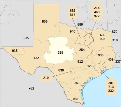 L'indicatif régional 325 est l'un des multiples indicatifs téléphoniques régionaux de l'État du Texas aux États-Unis.