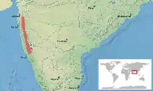 Cette espèce est endémique du Maharashtra en Inde[2]. Elle se rencontre entre 400 et 1 200 m d'altitude dans les Ghâts occidentaux.