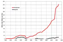 Dans les années 1970, l'Iran commence à exporter de faibles quantités de gaz à l'URSS, un deal qui prend fin une première fois en 1979-1980. En , l'Iran interrompt ses exportations de gaz vers la Turquie, 20 millions de m³/jour qui sont redirigés vers sa consommation domestique[2].