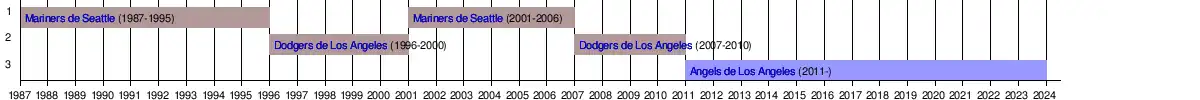 | 2013 | CL | Sud | 2e | 140 | 69 | 71 | .493 | 2 751 | 11 | 8 | 3 | .727 | Quakes de Rancho Cucamonga (2-1) JetHawks de Lancaster (3-2) Finale : Giants de San Jose (3-0) |