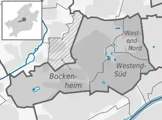 L'arrondissement (en rouge) au sein de la ville de Francfort-sur-le-Main
