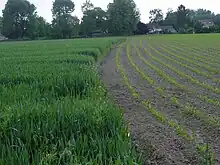 Entre ces deux types de mesures, il en existe d'autres que l'on peut qualifier de mesures intermédiaires. Il s'agit par exemple de bandes enherbées en bordure ou au sein de parcelles agricoles, d'un chenal enherbé (dans le thalweg des vallons secs) et de digues en terre. Ces mesures jouent un rôle de tampon au sein du paysage, en retenant temporairement le ruissellement et en piégeant les sédiments[6].