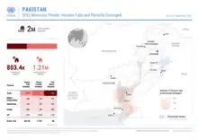 Les inondations au Pakistan ont commencé en et se sont intensifiées en . Elles ont fait au moins 1 700 morts[1], affecté 33 millions d'habitants et détruit 250 000 habitations et 1,8 million d'hectares de terres agricoles[2],[3]. Le , le Pakistan déclare l'état d'urgence[4]. Le Sindh est la province la plus touchée par ces inondations avec plus de 300 morts, suivi par le Baloutchistan avec plus de 200 morts, le Khyber Pakhtunkhwa avec plus de 180 morts et le Pendjab avec plus de 150 morts[4]. Au 24 août, plus de 700 000 têtes de bétail sont perdues, 3 000 km de routes endommagées et 130 ponts détruits[5], ainsi que 80 000 hectares de cultures[6].
