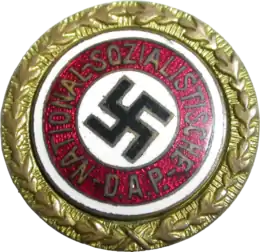 Il était décerné aux 100 000 premiers membres du parti (le numéro d'entrée au parti est gravé sur le revers), cet insigne fut également décerné à des personnes à la discrétion d'Adolf Hitler (ces insignes avaient les initiales « A.H. » gravées sur le revers du symbole).