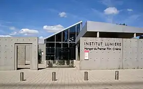 Le musée Lumière[18], créé principalement à partir de la collection du docteur Paul Génard et du fonds Lumière, permet de découvrir les inventions des deux frères, dont le Cinématographe[19] qui projette leurs premiers films le au Salon indien du Grand Café à Paris, le Photorama[20], l'Autochrome[21], la Plaque photographique dite Étiquette Bleue, la projection 3D et 75mm, la Photostéréosynthèse et la main mécanique. Une salle de projection permanente, au premier étage, permet de visionner les films Lumière restaurés. Le hangar d'où proviennent les ouvrières et les ouvriers de La Sortie de l'usine Lumière à Lyon[22] est accessible à la visite.